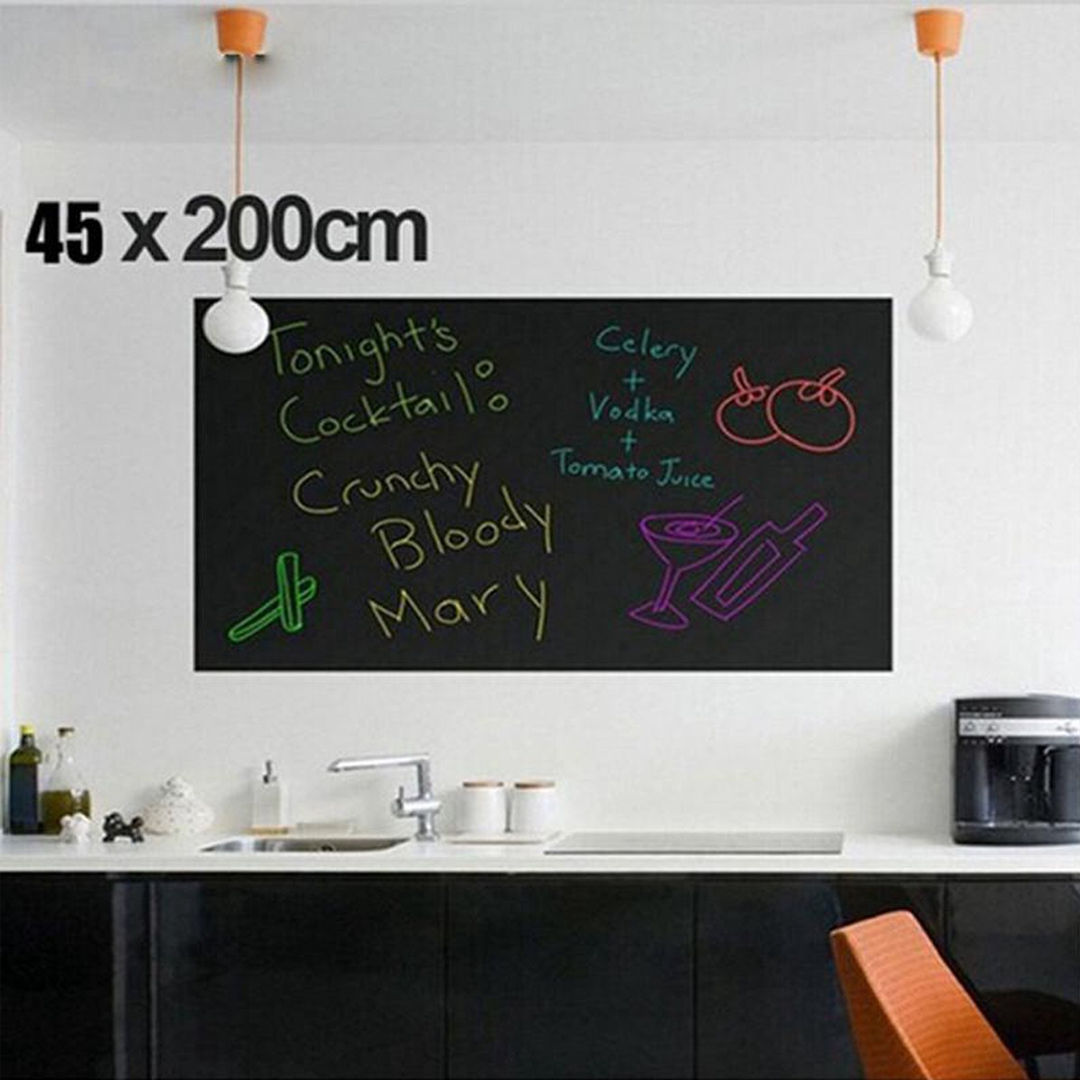 Dimenzije ploče su 45x200 cm. Uz ploču dobijete 5 kreda (2 bijele, 1 crvena, 1 plava te 1 žuta)